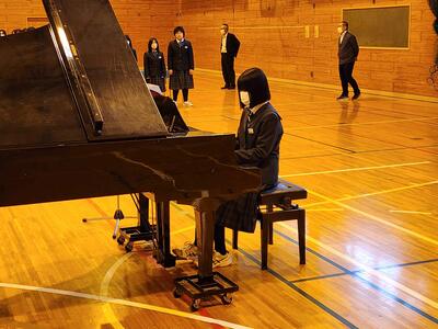 卒業証書授与式は3月14日(金)に行われる予定です。1・2年生ができる最後の大きな贈り物は、この式歌を心を込めて歌うことです。わずかな時間しかありませんが、精一杯練習し、素敵な式歌を届けられるように、一人一人が努力してほしいと思います。