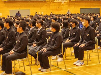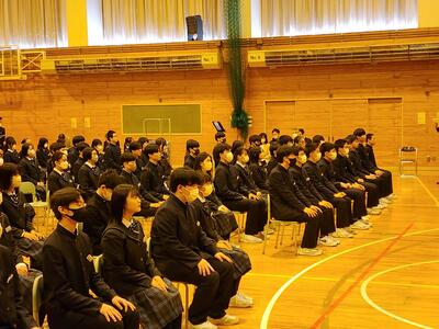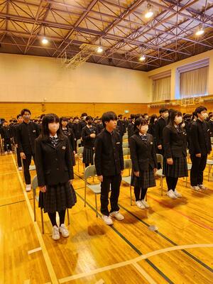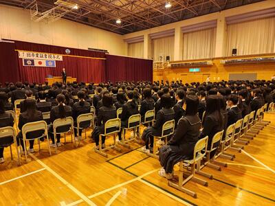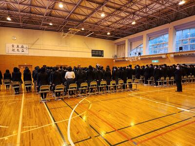 3月10日(月)、3時間目に全校生徒による卒業式の練習が行われました。生徒たちは、緊張感を持ちながらも、動き方や心構えをしっかりと確認し合い、式に向けての準備を進めました。その後、校歌の練習も行い、全員で声を合わせて歌うことで、卒業式に向けた一体感が高まりました。