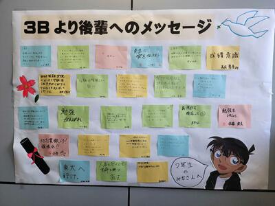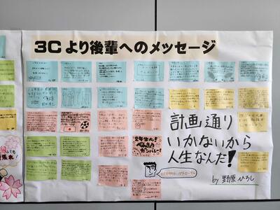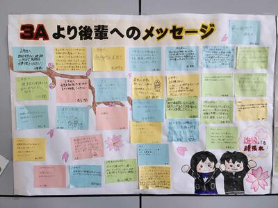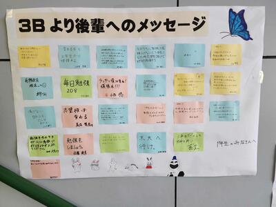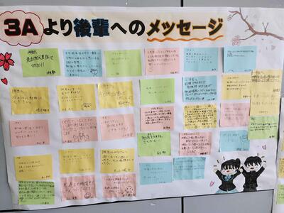 卒業を迎えるにあたって、3年生が後輩たちに向けて素直な気持ちを込めて書いてくれたメッセージが、学校の階段に貼り出されました。このメッセージには、これまでの学びや経験、そしてこれからの道を歩むあなたたちへの思いが詰まっています。
