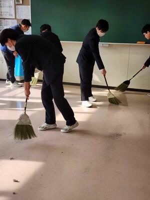 3月12日(水)6時間目、3年生は卒業前に最後の大掃除を行いました。この大掃除は、毎年卒業式の前に行われ、3年間お世話になった校舎への感謝の気持ちを込めて実施されます。