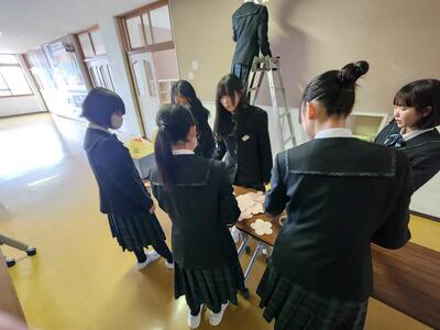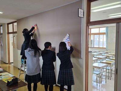 3月13日(木)の5時間目、2年生は体育館の保護者席などの準備を行い、さらに3年生の教室や廊下を美しく装飾しました。明日に向けて、最後の仕上げを行ったのです。2年生は、卒業式を迎える3年生のために、心を込めて協力し、素晴らしい会場作りをしてくれました。この舞台が整ったので、明日の卒業式が素敵なものになることを心から願っています。