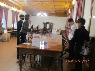 昨日、10月22日(火)校外で班ごとの研修を行いました。薄曇りの中、朝、学校を出発し、昼間で各班4~6名程度の人数で事前に計画した研修場所(西部地区)を巡ってきました。