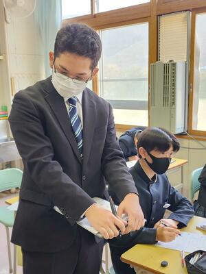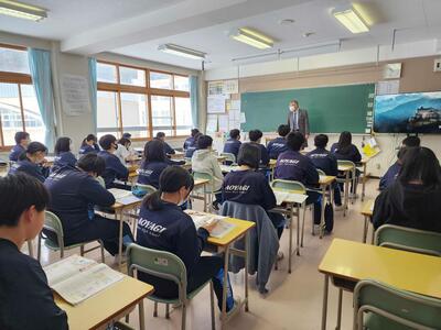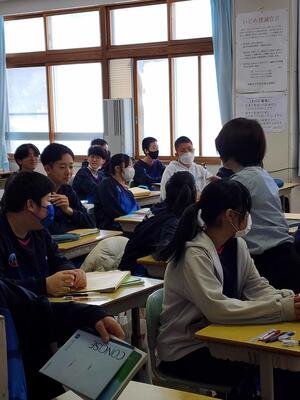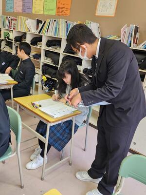本校の昨年度の卒業生が、本日まで2日間インターンシップに来て授業等を体験しました。主に数学を中心に授業での補助として参加してもらいました。これは、中学生と授業やそれ以外の交流だけでなく、教職の魅力に気づき、教員を目指すプログラムです。ぜひ、教員という目線で見て感じたことを今後につなげてもらいたいです。2日間、お疲れ様でした。