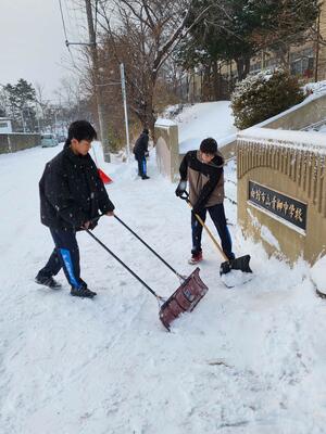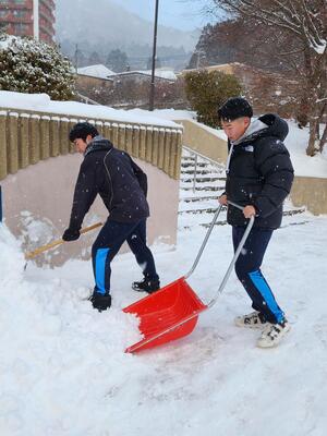 ⇒ 野球部2年生有志が朝、玄関前の雪かきを続けてくれています。