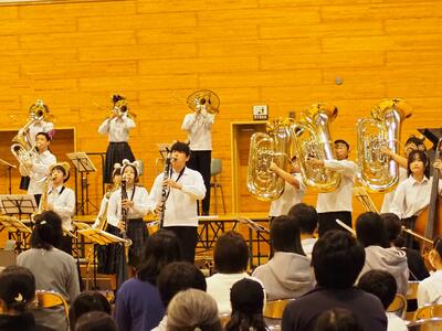 10月6日(日)、本校体育館にて青柳中学校吹奏楽部第7回定期演奏会が行われました。たくさんの方々にご参加いただき、盛大な演奏会となりました。この日をもって引退となる3年生は、後輩や保護者の方々のために素晴らしい姿を見せてくれ、会場のみなさんに感動を与えてくれてました。1・2年生は先輩の思いを引き継いで、青柳中学校吹奏楽部をよりよい方向へ進めてくれると期待しています。