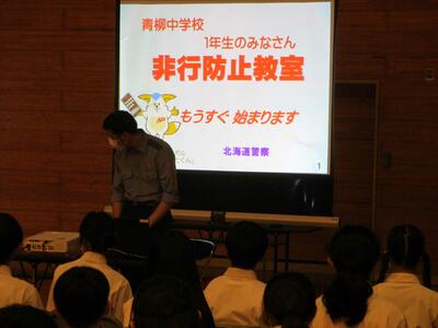 7月19日(金)5時間目に『薬物乱用防止教室』を開催しました。講師として、函館方面函館西警察署生活安全課・内藤 翔様に来ていただきました。薬物乱用の行為は、心身に様々な影響を与え、健康を損なう原因になること。また、この行為には個人の心理状態や人間関係、社会環境が影響することから、その要因に適切に対処する必要があることなどを学びました。自分には関係ないと思わず、学習したことを忘れずに生活していってほしいです。