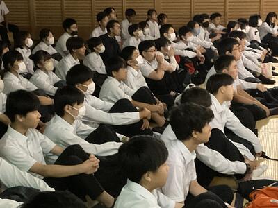 朝食後、全体集会が行われて、今後の予定について係生徒から話されました。