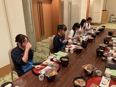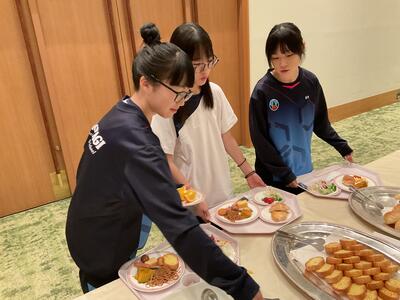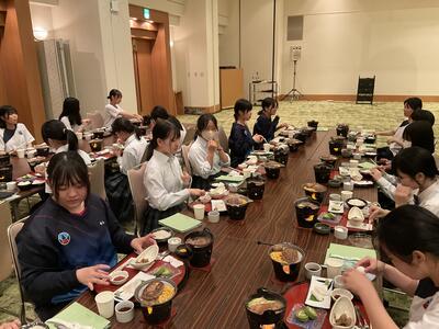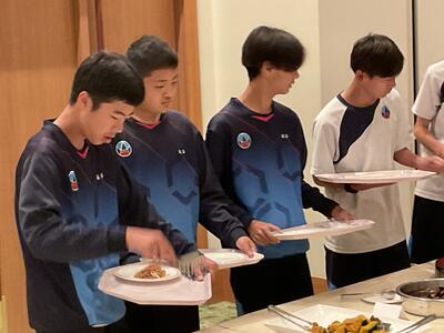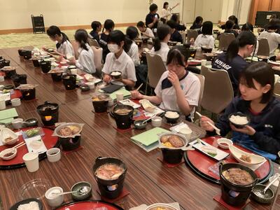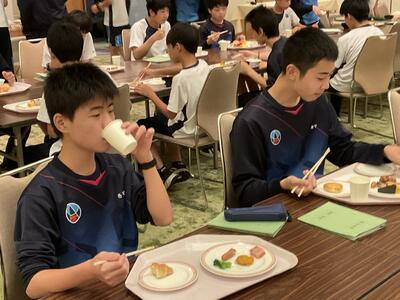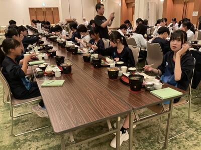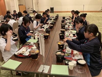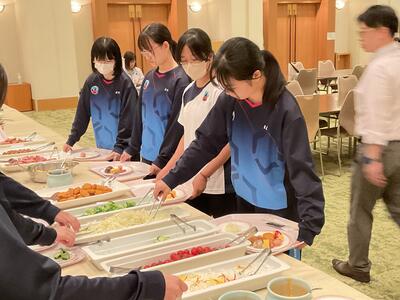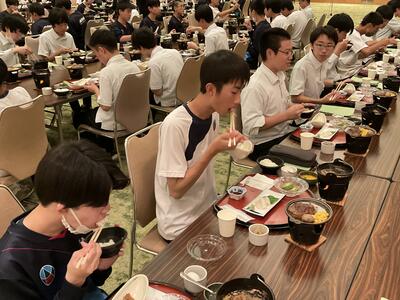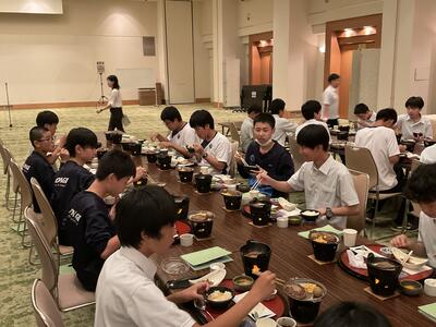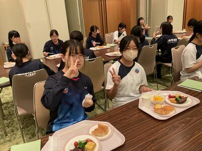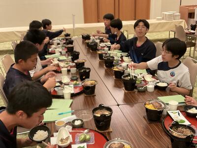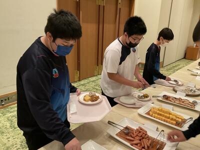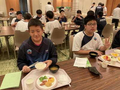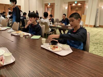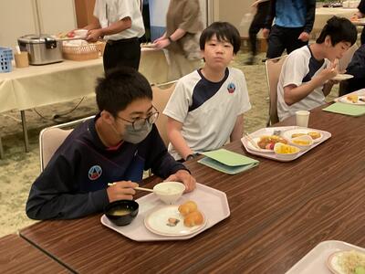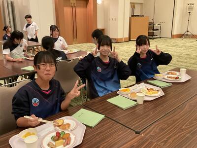 いくぶん眠そうな生徒もいますが、参加者は元気です。朝食を美味しそうに、たくさん食べている生徒が多くいました。