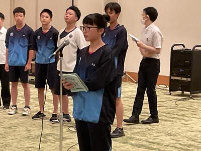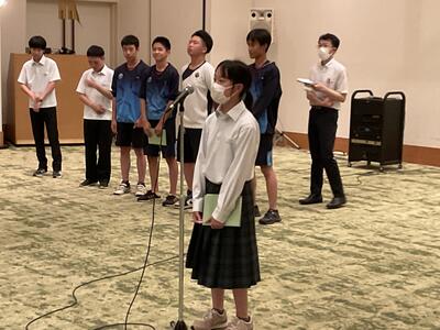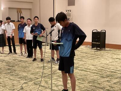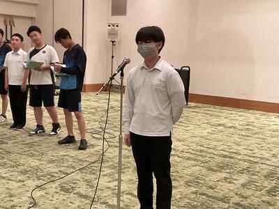 夕食後に全体集会があり、それぞれの委員会からこれからの注意事項など、さらに各学級の代表者による1日を振り返っての感想が述べられました。