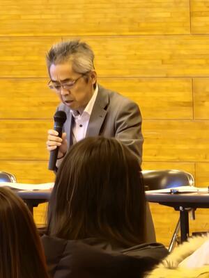 講師として、千島歯舞諸島移住者連盟函館支部長・坂上範夫氏をお招きし、映画鑑賞後に講話をいただきました。坂上さんから、「当時の島の様子を知る人が年々、減少している。」「島の様子は、近年、ロシアの新しい病院や幼稚園が建つなどロシア化が進んでいる。」と元島民の方々の様子や現在の島の様子を紹介し、北方領土に関わる活動についてお話くださいました。