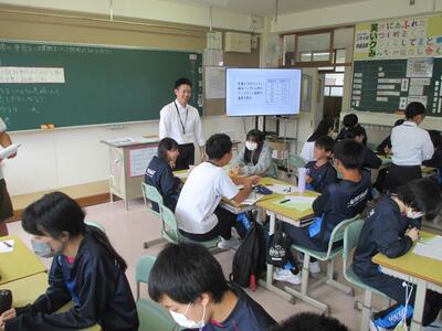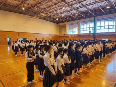 生徒たちは文化祭に向け、作品制作のアイディアスケッチを夏季休業中から行い、美術の授業でそのアイディアを作品として完成させました。制作した作品は、デザインや色彩・レイアウトの項目で4作品を学級代表を選考しました。