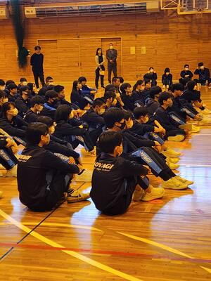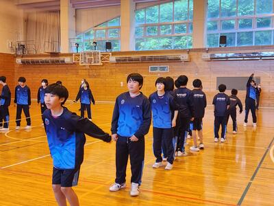 5月31日(金)に予定されている体育祭のための練習が21日(火)からスタートしました。この日は学年練習1回目でした。前日までの雨でグラウンドコンディション不良でしたので、体育館で並び方やルールの確認などが主な活動になりました。残った時間で大縄跳びの練習にあてました。1年生は初めてということもあり、大縄跳びで苦戦していました。