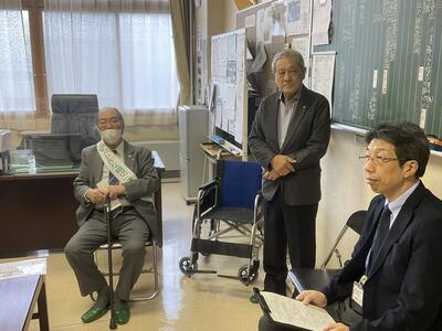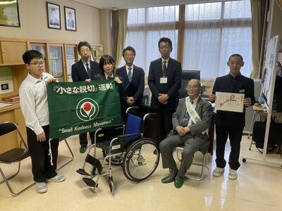 社会貢献事業に取り組む「小さな親切」運動函館支部(奥野秀雄支部長)から、本校に車いすが寄贈されました。「地域の輪・和・環プロジェクト」の一環で、2002年より小中学校や福祉施設などで寄贈されています。