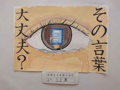 第50回道南地方中学生「社明標語入りポスター」には、本校美術部が応募しました。その中で2年C組 三上 凜さんが優秀賞を受賞しました。下の画像が、受賞したポスターになります。
