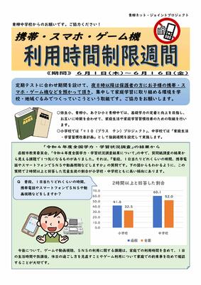 6月15日(木)・16日(金)の期末テストに向け、本校では生活改善週間がスタートしました。具体的には携帯電話・スマートフォン・ゲーム機の利用時間に制限をかけ、集中して家庭学習に取り組める環境をつくっていこうというものです。