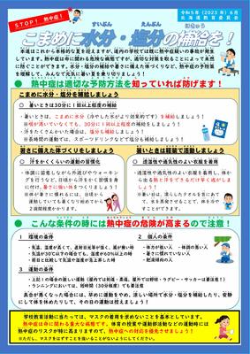 函館市教育委員会より、「学校(園)における熱中症対策の一層の充実について」の資料が届きました。