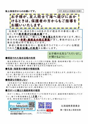 函館市教育委員会より、「遊泳事故防止に係る対策について」の資料が届きました。