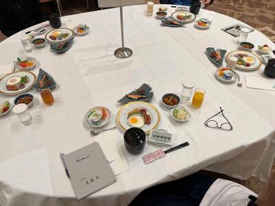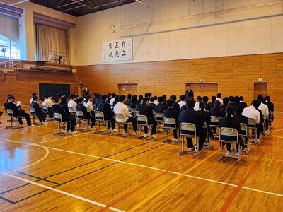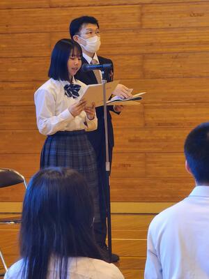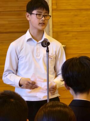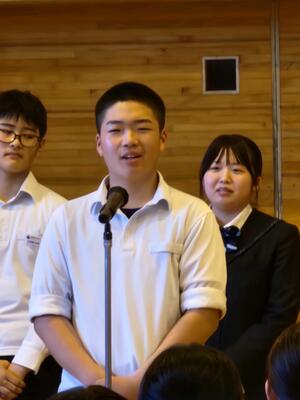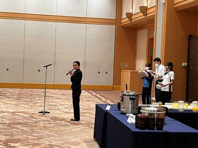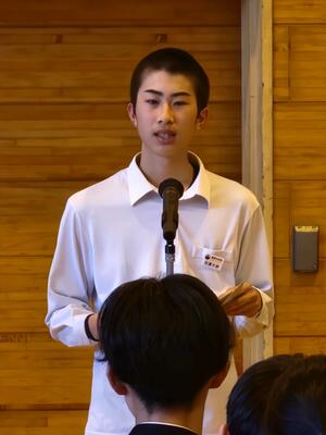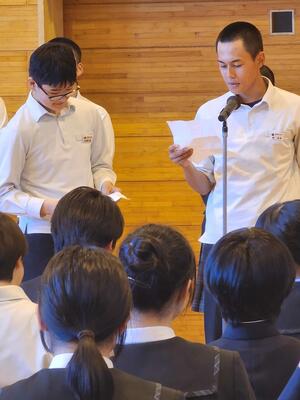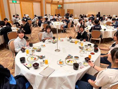 朝食をいただいた後、全体会と退館式が行われました。司会や実行委員を務めた生徒たちは、立派な態度で落ち着いて話し、式の進行をしっかりと担っていました。会場全体が引き締まった雰囲気に包まれ、とても素晴らしい形で2日目がスタートしました。