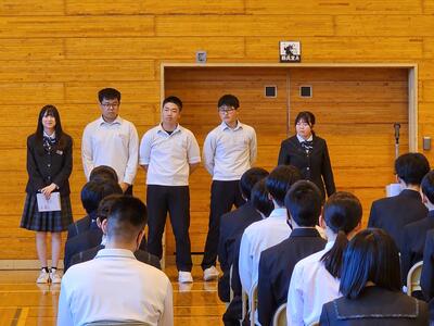 出発を目前に控えた5月16日(金)の6時間目には、結団式が行われました。生徒たちの表情からは、これから始まる修学旅行への大きな期待とわくわくした気持ちが伝わってきました。