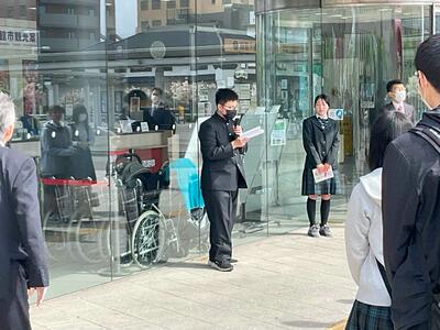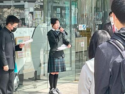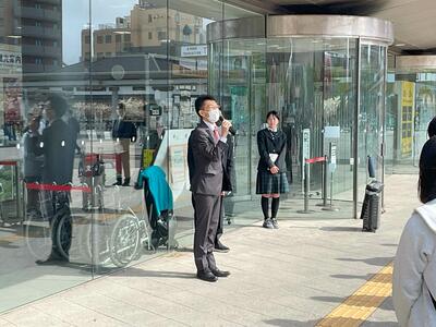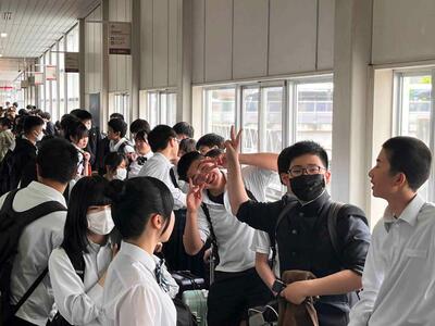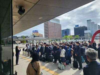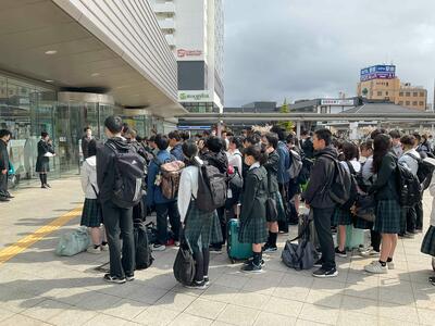 3年生が楽しみにしていた修学旅行が、いよいよスタートしました。1日目の朝、函館駅前で出発式を行い、改めて修学旅行の目的や注意事項を全員で確認しました。