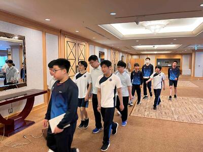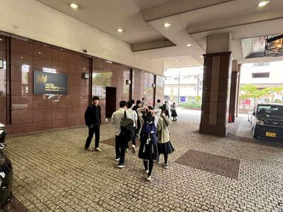 自主研修を終え、本日宿泊するメトロポリタン・ニューウイングへ移動し、入館式を行いました。式の中では、ホテルの方への挨拶や宿泊中のマナーについて改めて確認し、今後の行動に責任をもつ意識を高めました。