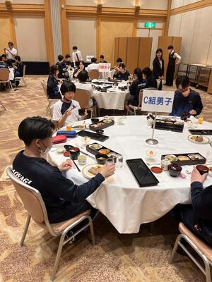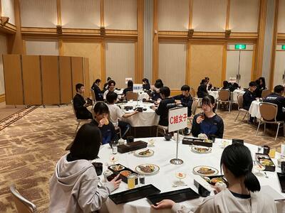 入館式を終えた後、待ちに待った夕食の時間でした。美味しく食事を味わいながら、仲間たちと会話を楽しみ、笑い声が耐えない、和やかなひと時を過ごしました。