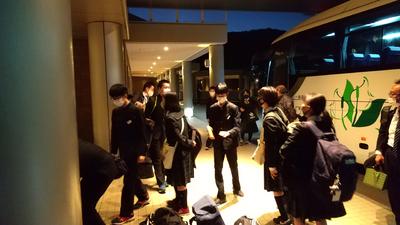 本日修学旅行出発です。天候もよく秋晴れの中、予定の時刻より少し早めに出発しています。