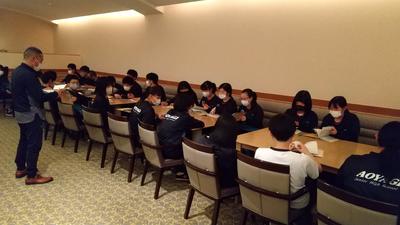 A組とB組の夕食と、夕べの集いの様子です。たくさん食べました。この後C組の夕食が始まり、A・B組自由時間です。22:30に消灯・就寝の予定です。具合の悪い生徒もなく、皆元気とのことです。