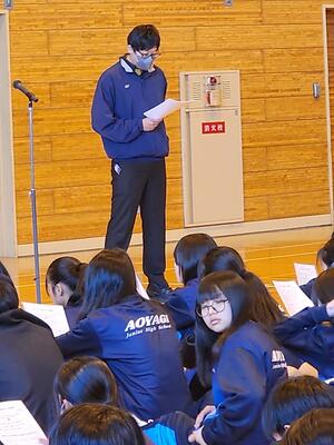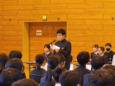 これから1年間、中学校生活の中でさまざまな出来事があることでしょう。ときには悩んだり、壁にぶつかったりすることもあると思います。そんなときは、一人で抱え込まずに、周りの大人や友達に相談することが大切です。人に話すことで気持ちが整理され、新たな力が湧いてくることもあります。