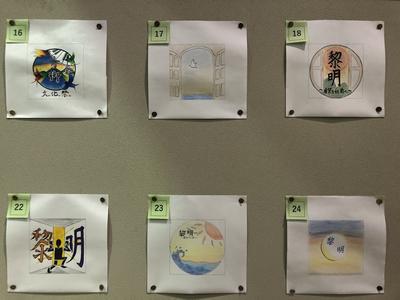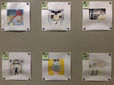 文化祭シンボルマークコンクール 投稿: 主幹教諭 (2021/09/30) カテゴリー: 学校行事 10月1日(金)文化祭シンボルマークコンクールの最終選考作品が掲示されます。 最終選考作品 36作品出揃う 玄関ホールの掲示板に、美術の学習で作成したシンボルマークの力作がずらりと並んでいます。各学級の選考を経た36作品は、文化祭当日生徒へお披露目され、その中から最優秀作品が、生徒と先生方からの投票により決定します。