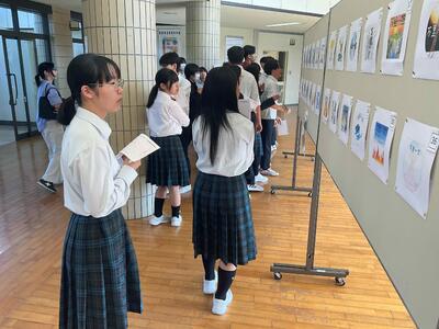 合唱練習では、どの学級も回を重ねるごとに大きな成長を遂げており、最近の努力の様子からも、明日の本番に大きな期待が高まっています。また、シンボルアートの投票では、どの作品も力作ぞろいで、生徒の皆さんが真剣に選んでいる姿が印象的でした。
