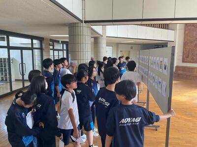 いよいよ明日に迫った第8回青柳中学校文化祭に向けて、本日は各学年で合唱練習や展示見学、シンボルアートの投票、そして全校合唱練習の第2回目が行われます。