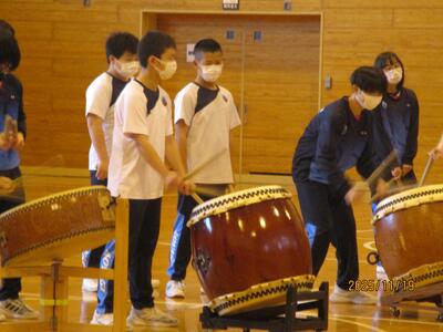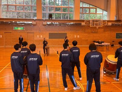 体育館には、生徒たちの力強い太鼓の音色が響き渡り、和太鼓の魅力に親しんでいる様子がうかがえました。生徒たちは、和楽器の伝統に触れながら、音楽を通じて日本の文化を深く学ぶ貴重な時間を過ごしました。