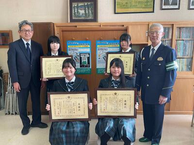 さらに、函館西警察署長の髙橋司朗様より、私たち美術部員は非行防止対策の推進に貢献したとして、感謝状を頂戴いたしました。このような評価をいただけたことは、大変光栄であり、今後も地域社会に貢献する活動を続けていきたいと考えています。美術部は、この活動を通じて、社会の一員としての責任を再認識したようです。