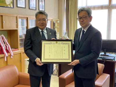 函館造園建設業共同組組合様への感謝状 投稿: 主幹教諭 (03/31) カテゴリー: 連絡事項 函館造園建設業協同組合様のご協力のもと、本校周辺の樹木剪定を実施していただきました。 このたびのボランティア活動に対し、函館市長・大泉潤様より感謝状が贈られました。 本活動により、校内外の環境がより安全で美しく整えられ、教育環境の一層の向上につながっております。多大なるご尽力を賜りましたことに、心より御礼申し上げます。