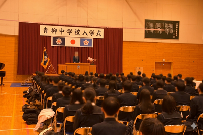 本日、4月8日(水)、春らしい穏やかな気候に包まれた中、青柳中学校の第8回入学式が午前10時30分より行われました。新たに入学した1年生76名の氏名確認が行われ、新しい学び舎でのスタートが切られました。